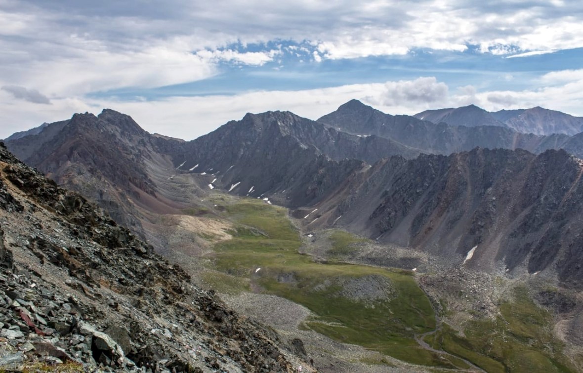 Виды с Акташского ретранслятора на Северо-Чуйский хребет: