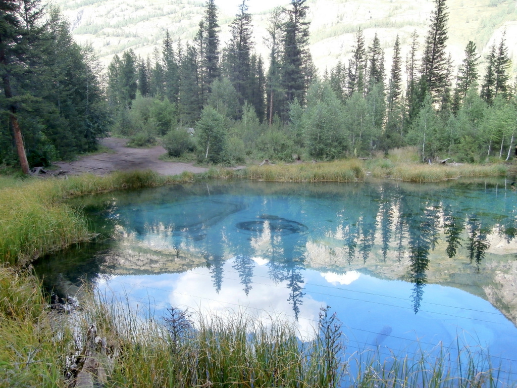 Я решила водиночку сходить на Гейзерное озеро. Это заметная достопримечательность Алтая, очень посещаемая. И находится озеро совсем рядом с нашей турбазой.