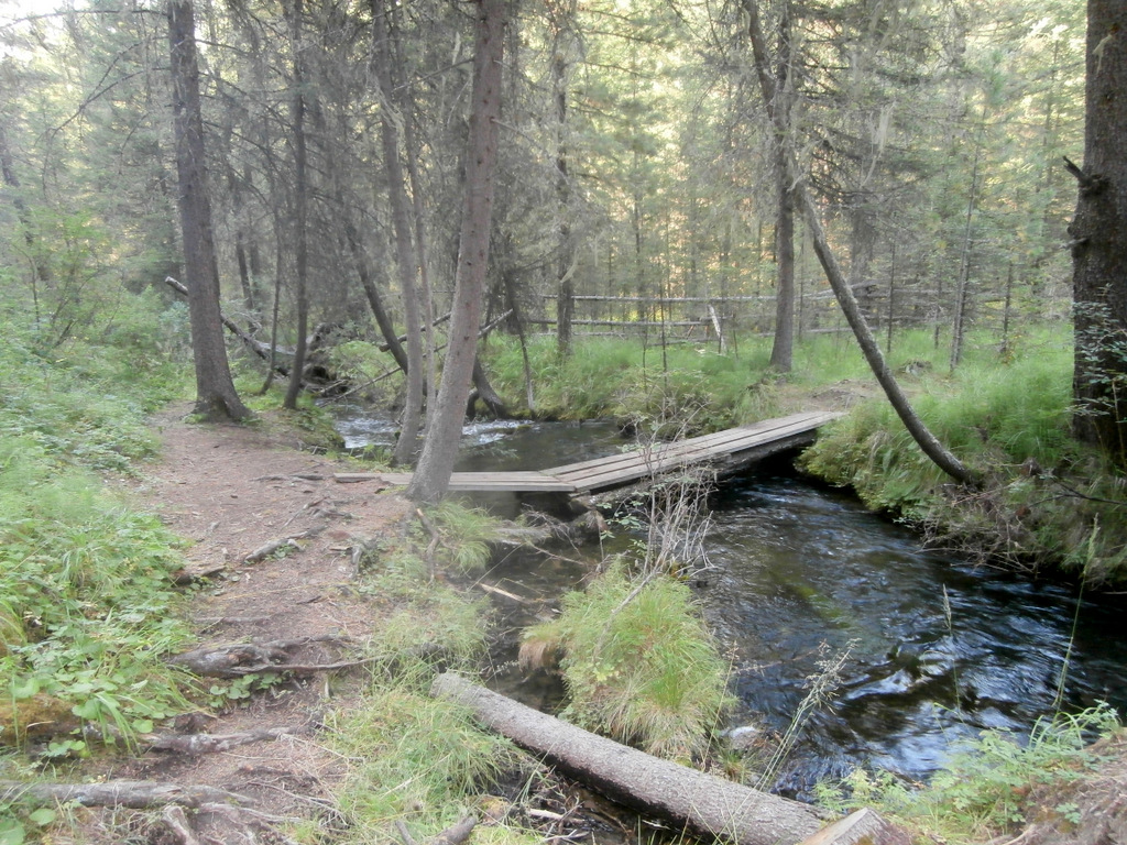 Тропа идёт вдоль ручья, и как только мы к нему приблизились, на нас набросились полчища злейших комаров. Искусали меня в хлам, никакая одежда не спасла, кусали даже сквозь носки. Просто ужас. Пришлось спасаться бегством. И много дней потом болели их укусы.