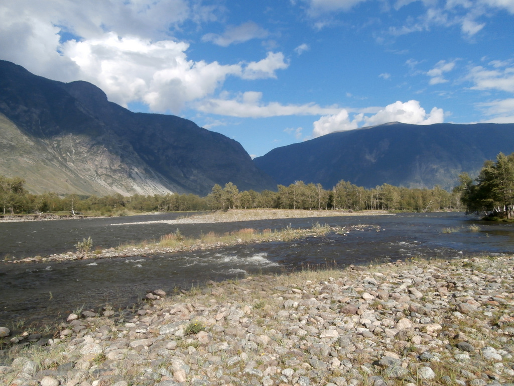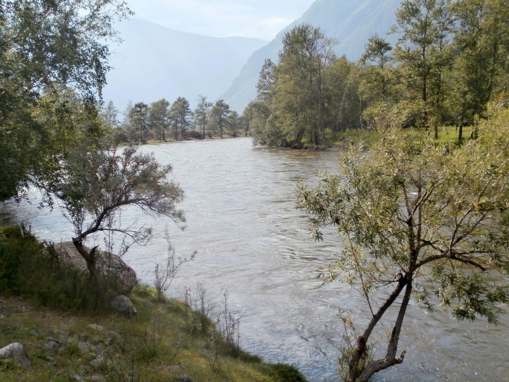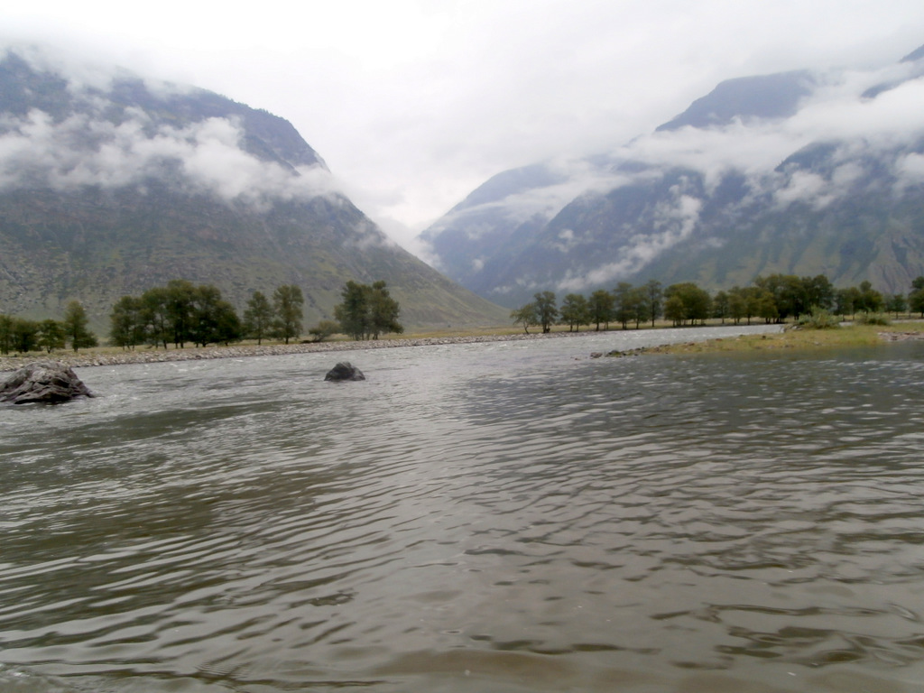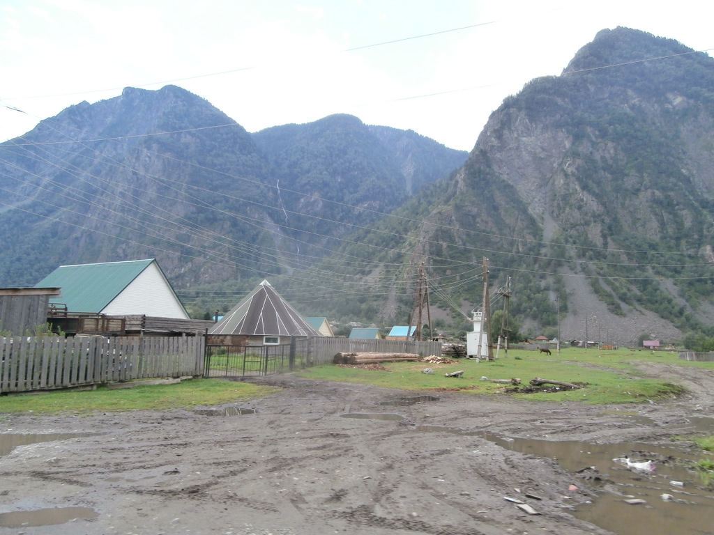 В Йогаче мы поселились на симпатичной турбазе «Золотая рыбка», недалеко от реки Бия, вытекающей из Телецкого озера.