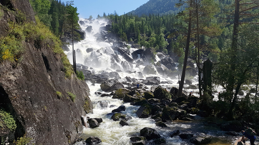 После верхнего Карасу поехали на нижний. Короткая прогулка по лесу от стоянки до водопада, и вот оно, чудо перед нами.