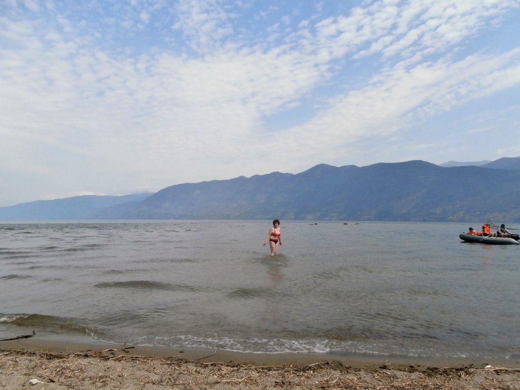 Шкипер, молодой парень-алтаец, всю дорогу рассказывал интересные вещи. В частности, он рассказывал, что иногда можно увидеть с катера, как мишки выходят на берег и купаются в озере.