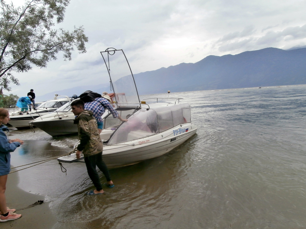 У берега было пришвартовано штук 8-10 катеров. Честно говоря, я немного опасалась за их надёжность. Не очень доверяла я российской технике…