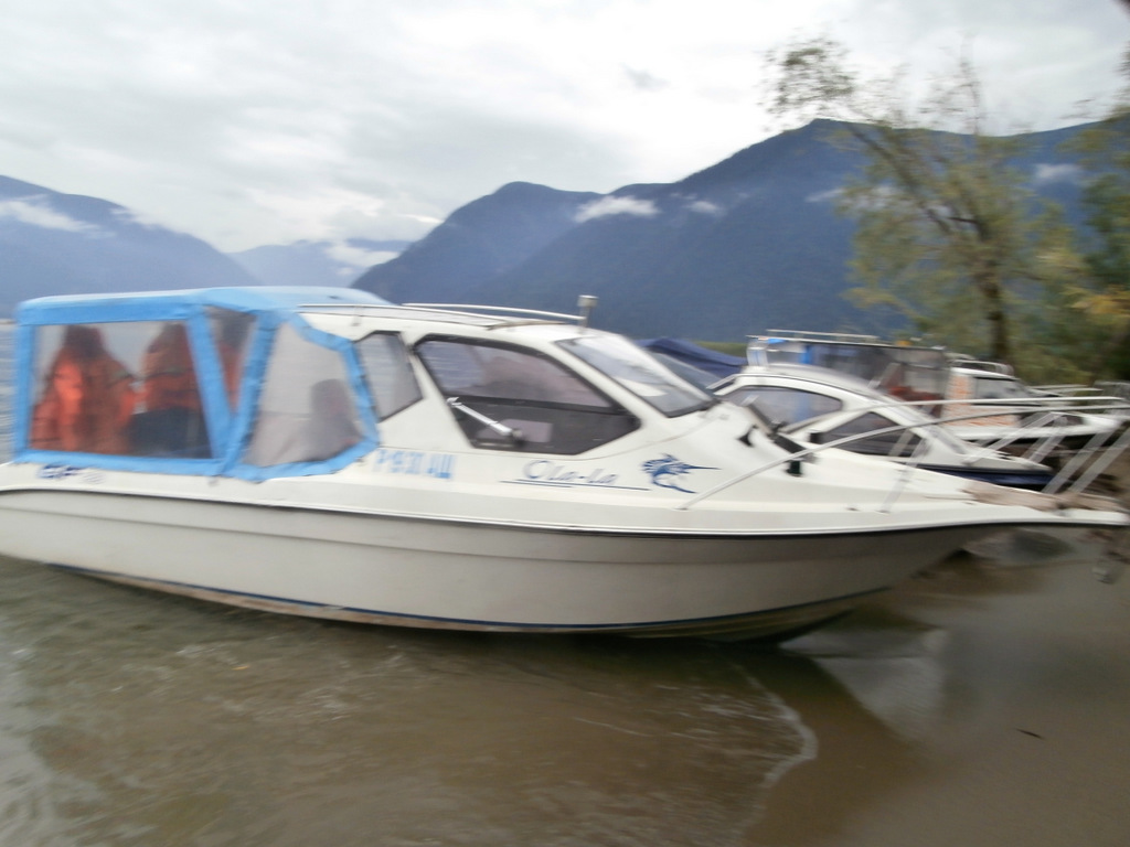 К 12 часам мы собрались на берегу, чтобы отправиться на катерах на северную оконечность озера в посёлок Йогач. Одновременно здесь было примерно 5-7 групп, совершаюших тур «Золотое кольцо Алтая» от фирмы Алтай-маршрут. То есть примерно 60-70 человек.