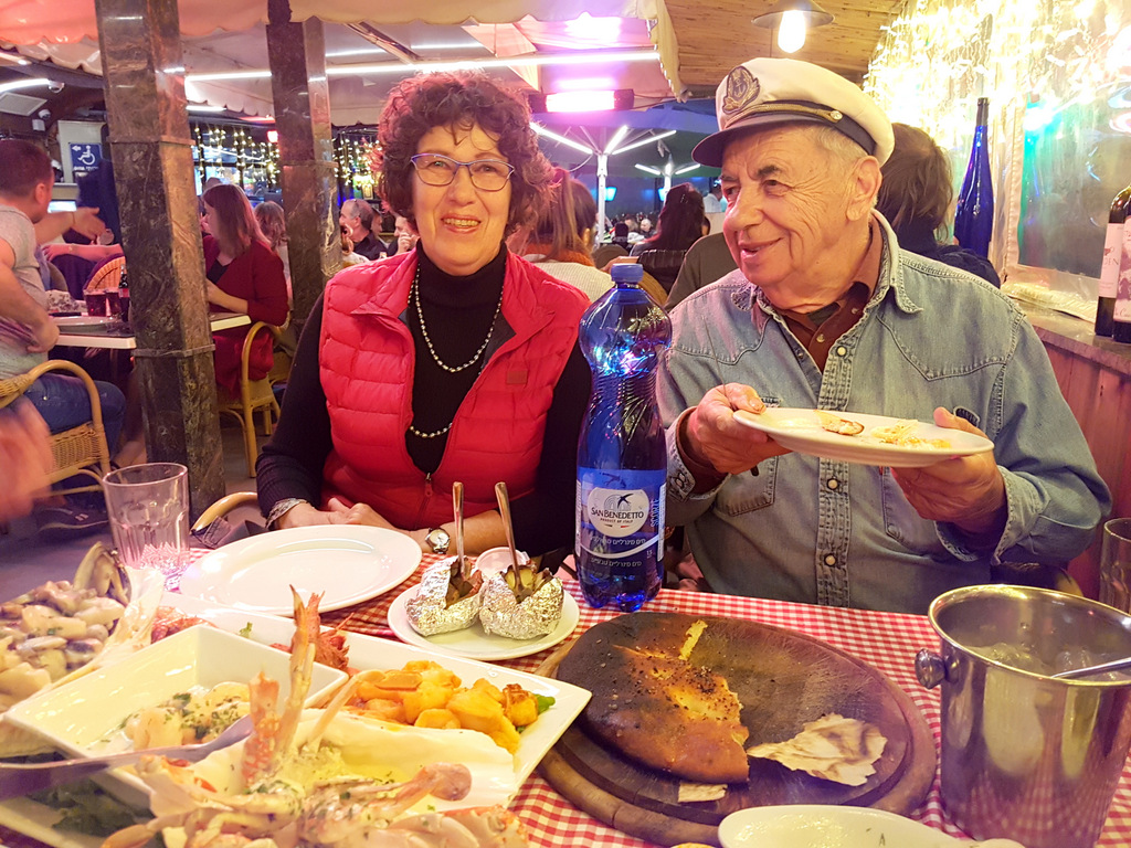*** Техническая деталь. За еду в ресторане мы заплатили 445 шекелей, включая чаевые. Из них 400 дал джентельмен Вольдемар. И это за пятерых. Плата с морепродуктами была огромная, мы наелись вдоволь, но часть еды осталась, и её мы забрали домой. Бутылку виски принесли с собой, и за это с нас взяли 40 шекелей. Вот так недорого можно встретить Новый год в Эйлате.