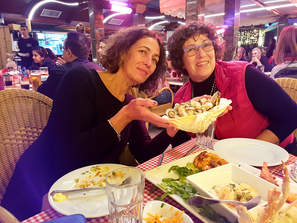 По дороге в Эйлат я узнала, что мы идём праздновать Новый Год в ресторан «Залив», и очень обрадовалась такому известию. В эту новогоднюю ночь в ресторане всё было забито, но для нас столик нашёлся. Причём в последний момент. Спасибо Юле и её подруге, они приехали в Эйлат утром и позаботились, чтобы мы достойно отметили праздник.