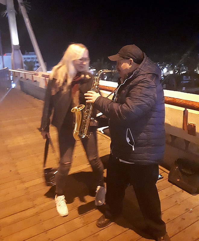 Приближалась полночь. Мы как раз познакомились с двумя приятнейшими женщинами, жительницами Эйлата — Натальей и Татьяной, и они пригласили нас на мост (мост через лагуну, находящийся рядом) встретить мгновение, когда Новый Год вступает в свои права.