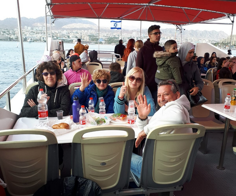 Далее по плану была прогулка на кораблике со стеклянным дном. Я пошла на кораблик в основном ради компании. Но было приятно плыть по морю и смотреть на знакомые места на берегу. И, кстати. я присмотрела одну интересную тропку, ведущую на гору, справа от полевой школы — Бейт Сефер Садэ. Как-нибудь туда заберусь.