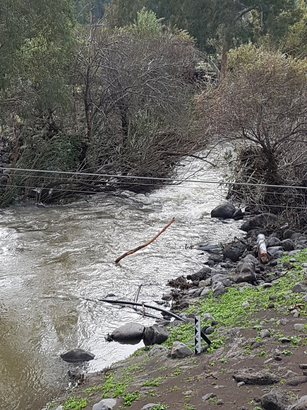Перед выездом на шоссе 91 увидела сверху Ярден в том месте, где не раз купалась, и немало удивилась. Сколько же там было воды! Просто чудеса природы.