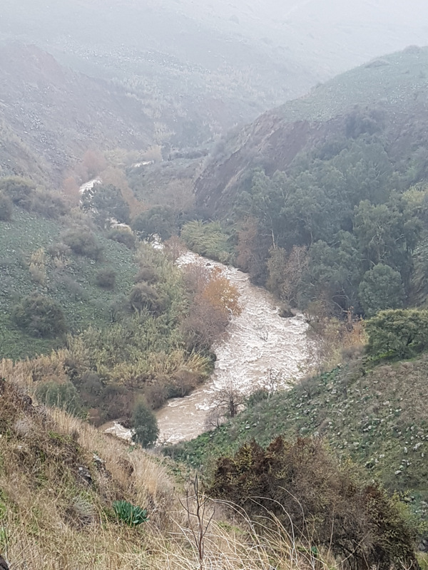 Я немного переживала, смогу ли я благополучно проехать по этой дороге, не размыта ли она после дождей? Но джиповка была в хорошем состоянии, и я довольно быстро продвигалась вперёд. Сделала две остановки, увидела реку Ярден с высоты, услышала её шум, и поняла, что она действительно необычайно полноводная.