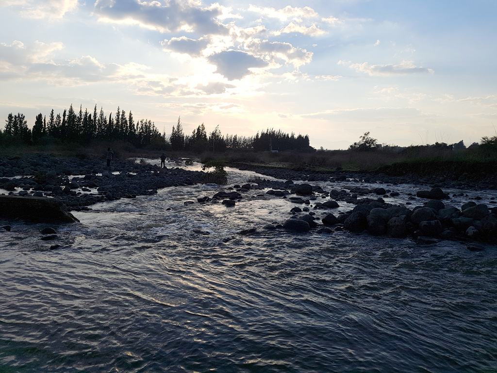 Ярден. Место, где заканчивается маршрут каяков. Вода бушует.