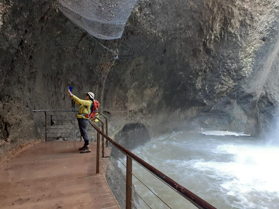 Сегодня воды в водопаде всё еще много, хоть и поток уменьшается с каждым часом. Сильные дожди лили вчера и позавчера, а сегодня сухо. Но под дождём я сюда точно не добралась бы, слишком экстремально, поэтому довольствуюсь тем, что есть и наслаждаюсь потрясающим зрелищем. Я видела этот водопад пять раз до этого, но с таким количеством воды — впервые!