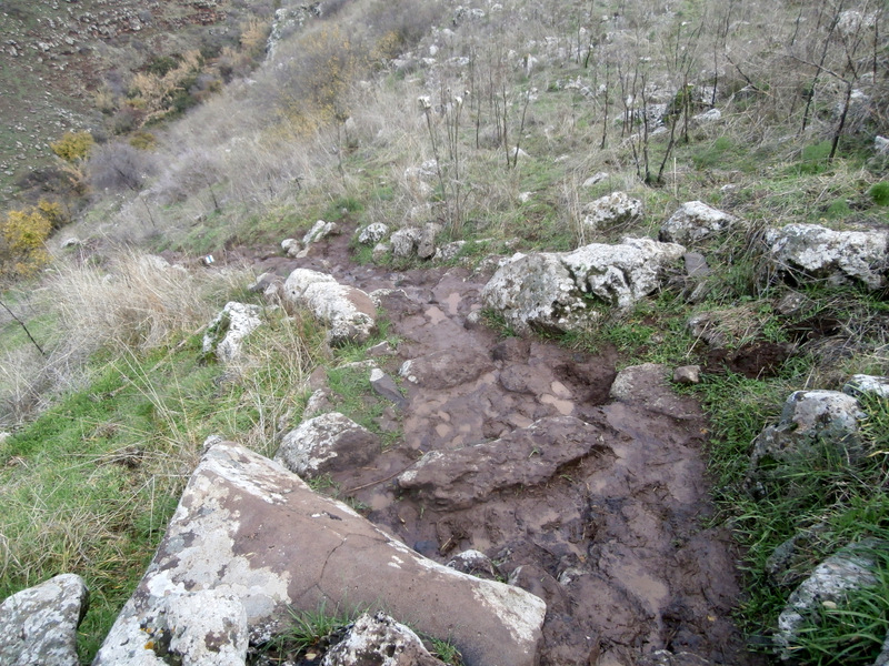 «Ну Лена, вперёд, не робей», — подбодрила я себя и поехала вниз. Но вскоре увидела подозрительный участок с грязью и решила не рисковать. Для чего есть ноги? Пошла вниз пешком. Спустилась за 6 минут, иногда даже бежала, так хотелось поскорее посмотреть вблизи на бушующую реку Ярден. По пути увидела, что вода заливает мост. Ура! Как здорово, что я сюда приехала!