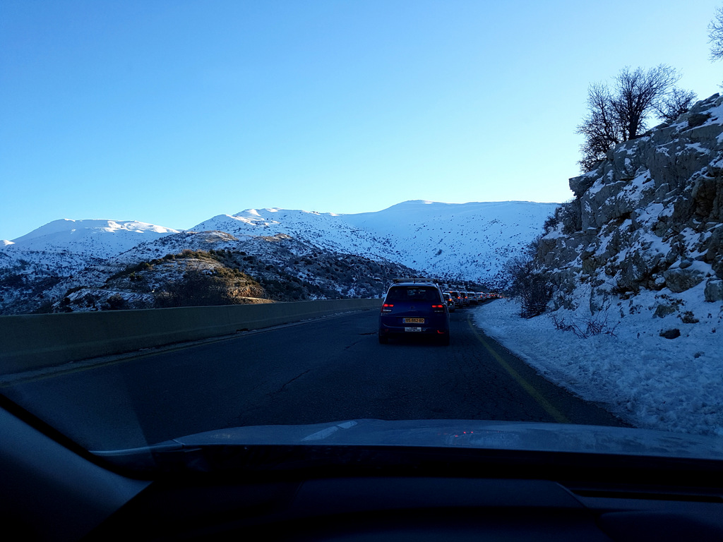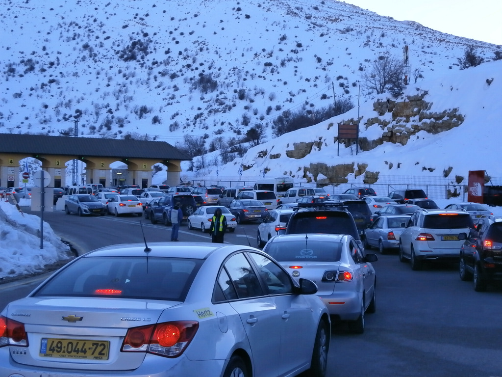 После довольно средненького катания в декабре 2013-го, я всё же решила попытать счастья ещё раз, и через год, 13 января 2015 года рванула на Хермон на второй день после открытия курорта. Как выяснилось позже, это было большой ошибкой. В тот момент я ещё не знала об одной из главных особенностей национального катания, заключающейся в том, что в первый день открытия лыжных трасс на Хермоне на его свежий, нетронутый снег, приезжают толпы фанатов. Они занимают очередь с вечера и ночуют у армейских ворот. Фанаты, одним словом. Об этой особенности мне рассказал человек, с которым мы разговорились во время катания. Но пока я добралась до лыжных трасс, мне пришлось порядком пострадать.