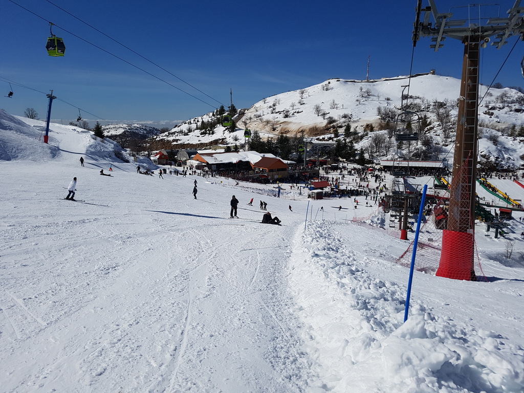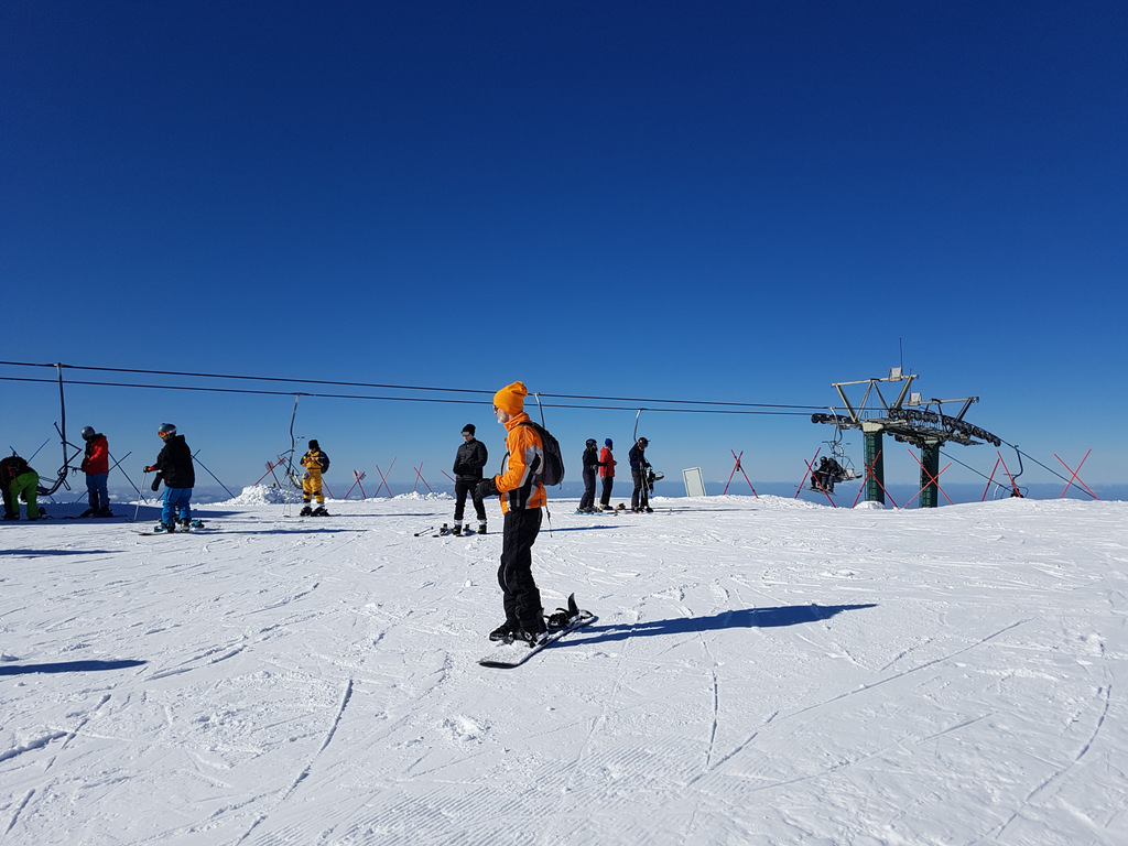 2. Чтобы покататься на лыжах, придётся выстоять несколько очередей — на въезде в кассу, в офисе на оплату оборудования и ски пасса и в конце дня — очередь на автобус, чтоб подъехать на стоянку. На подъёмник единственной синей трассы тоже обычно есть очередь.