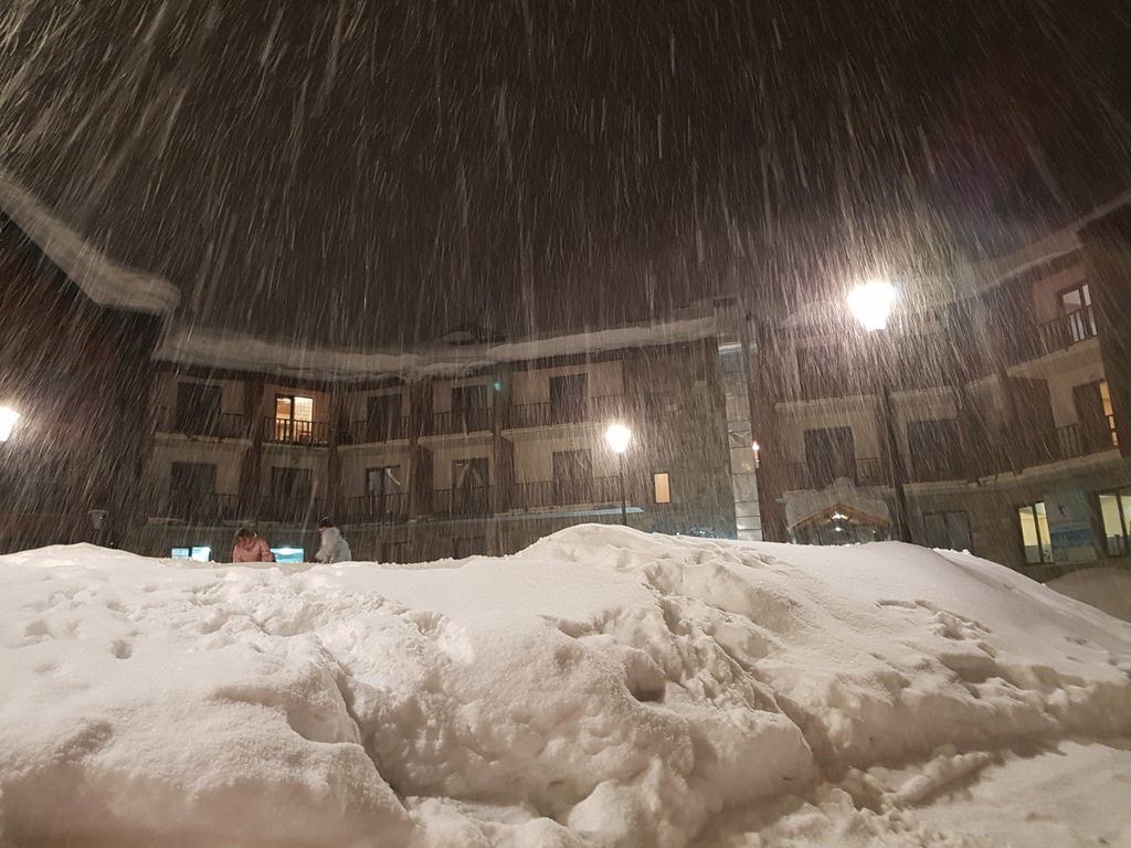 Через некоторое время погода стала ещё хуже. Повалил снег. Стало невозможно кататься в обычных солнечных очках, они залепляются снегом, и ничего не видно.