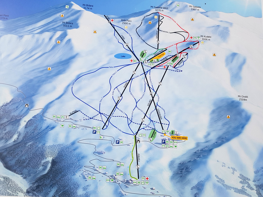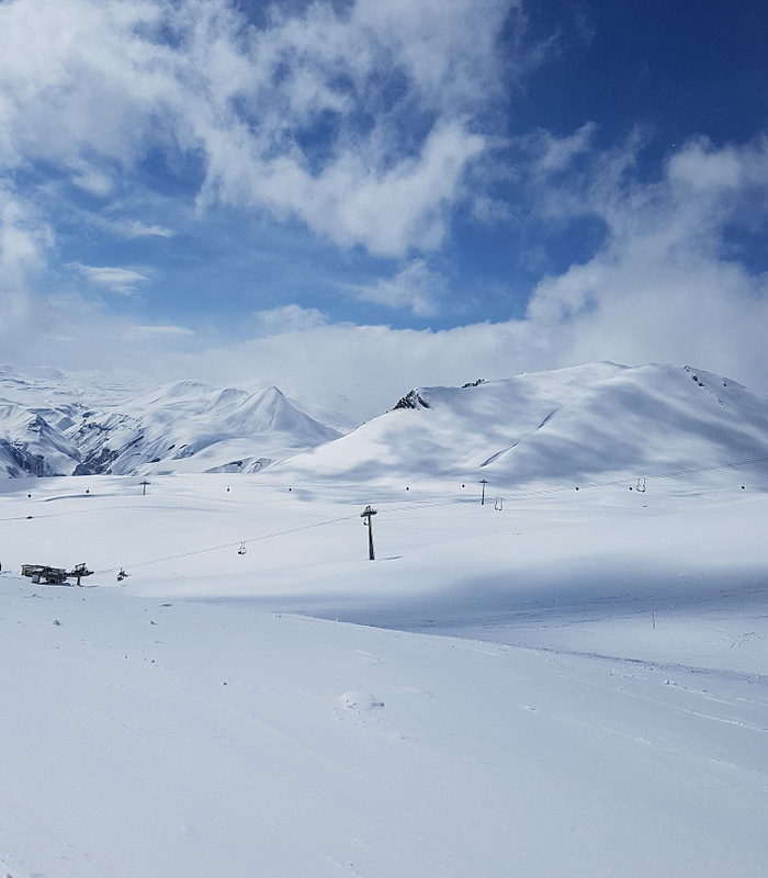 Про Гудаури много раз слышал и читал, что место примечательно тем, что есть огромные территории для оффписта и относительно недорогие уроки, что делало это место ещё более привлекательным, особенно в свете того, что Европа так и осталась закрытой до конца сезона.