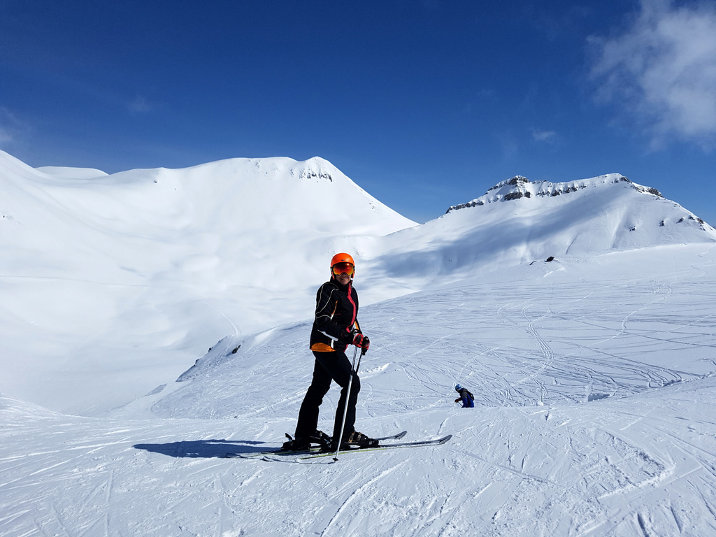 Затем ещё 2 раза съехали по фрирайдным полям в том же районе, где были до этого. Снег свежий, пушистый, и его так много! Это чистый, неописуемый кайф — ехать по этим полям! Я ни разу не упала. У меня всё получилось, как и обещал Костя.