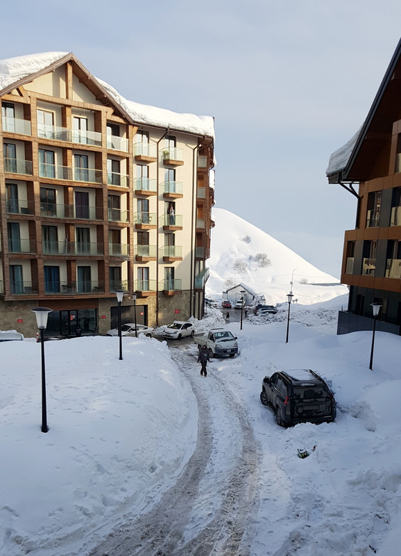 Поселились в аппартаменты. Комплекс называется Gudаuri Palace. Расположен в новом (верхнем) Гудаури.