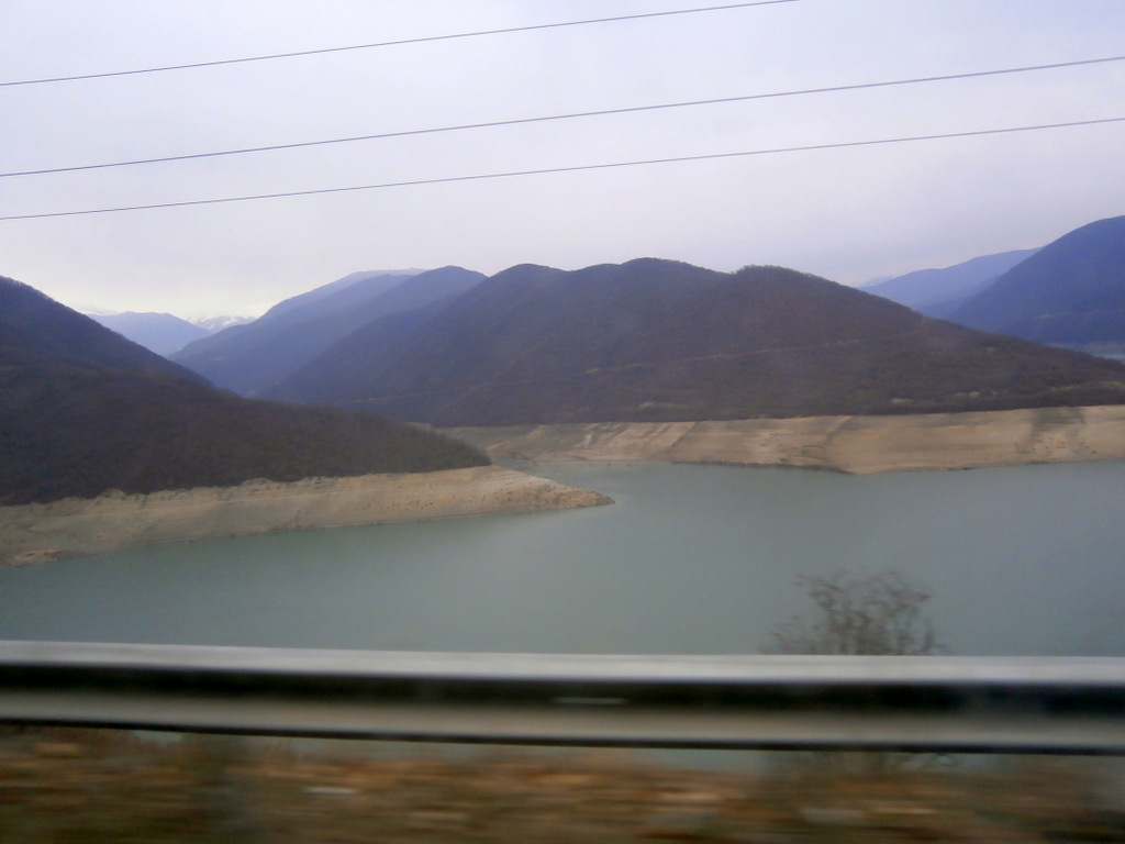 Пейзажи за окном живописные — горы, ущелья, реки. По мере набора высоты становится пасмурно. На подъёзде к Гудаури появился высокий снежный покров.