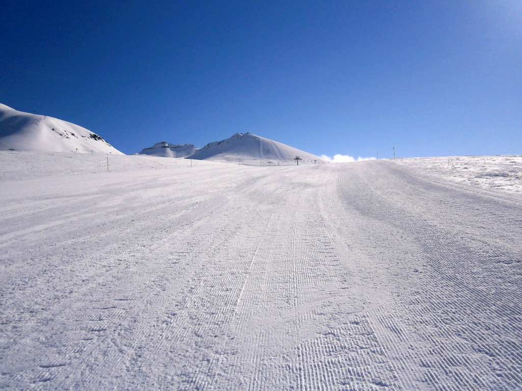 Трассы с утра превосходные — вельвет. Жёсткие, но для катания хорошо.