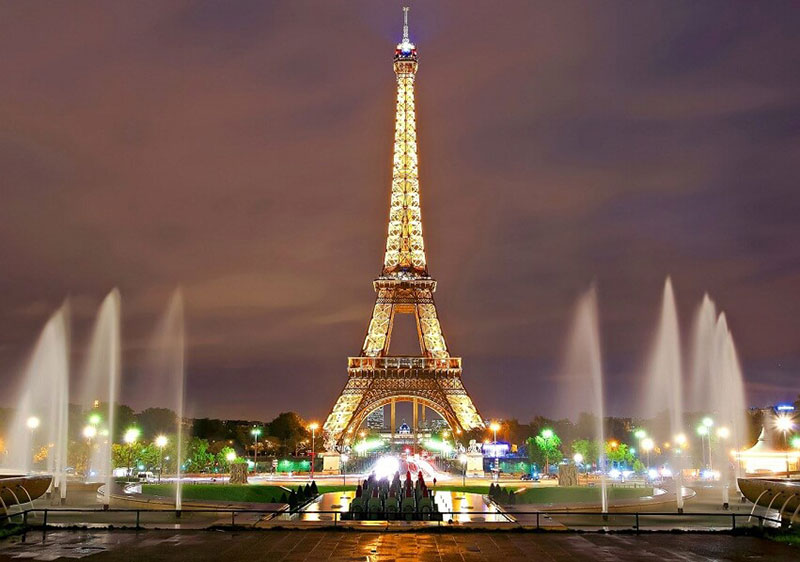 Эйфелева башня в вечерних огнях.
