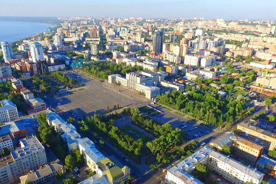 Площадь Куйбышева — четвёртая по площади площадь в Европе. Вид сверху.