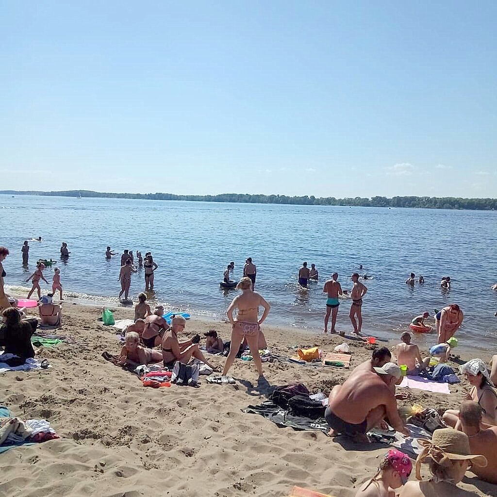 На пляже — яблоку негде упасть, народу видимо-невидимо. Что-то не припомню, чтобы раньше было столько людей на нашем, совсем не центральном пляже. Видимо, из-за жары. Да и население выросло, и переправа за Волгу теперь не ходит, поэтому все здесь и кучкуются.