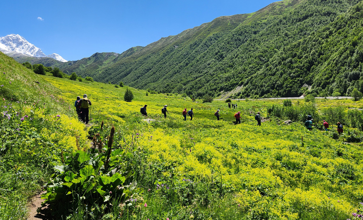 Полет в Батуми. Перезд в Местию. Из Местии выходим в трек и за четыре дня доходим до Ушгули. Из Ушгули идём на ледник Шхара и обратно. Затем возвращаемся в Местию и оттуда едем обратно в Батуми с остановками в интересных местах.