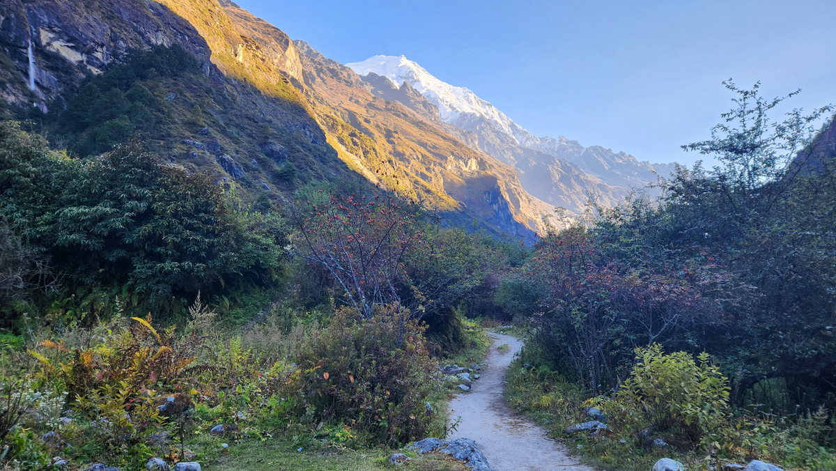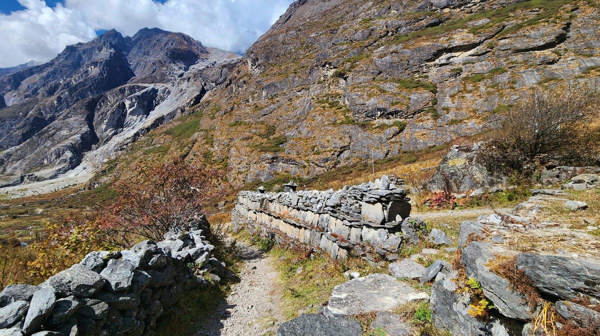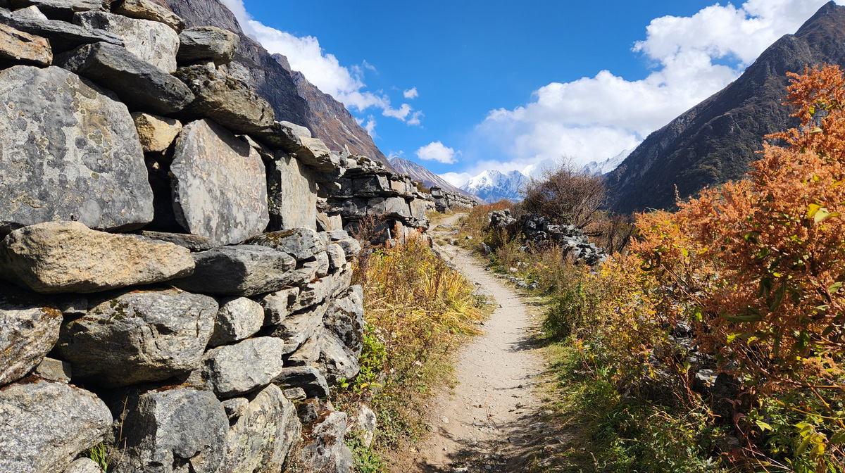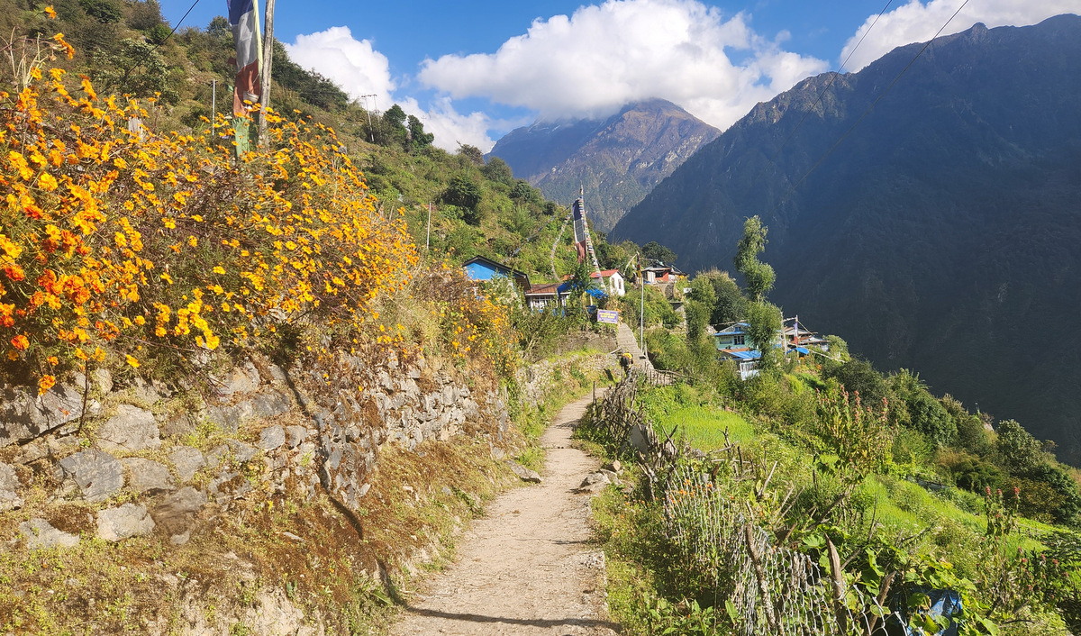 Сердце сжимается, когда думаешь о том, что во время землетрясения 2015 года деревня Лангтанг была стёрта с лица земли селем, пришедшим со стороны горы Лангтанг. Сейчас деревня заново отстроена, расположена чуть дальше по ходу тропы.