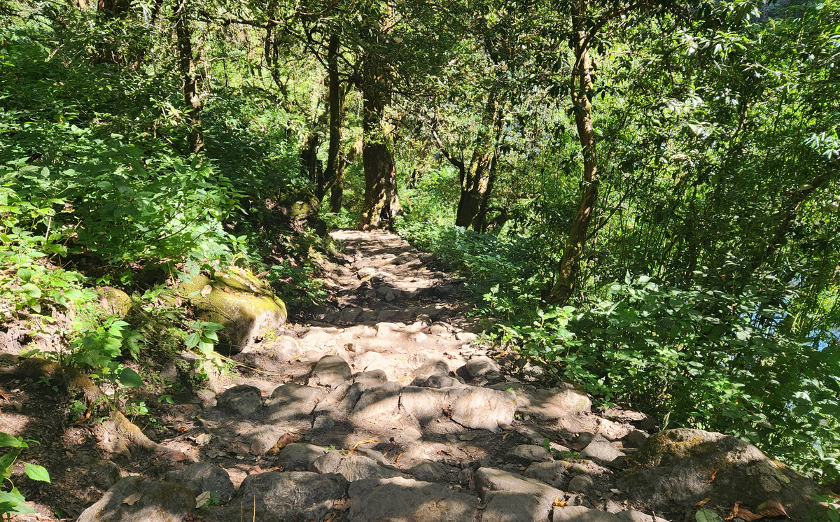 По такиим тропам мы шли на треке Лангтанг. Выложены камнями. Идти не очень удобно. И постоянные каменные лестницы.