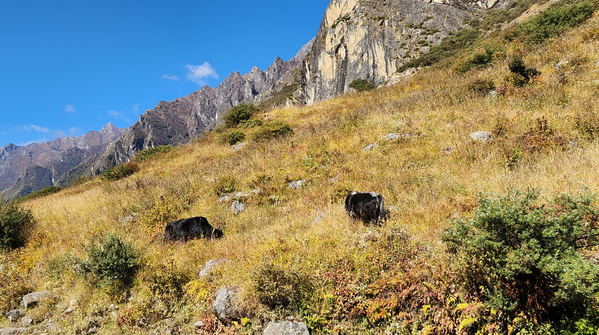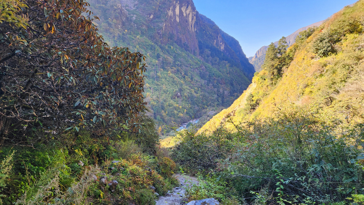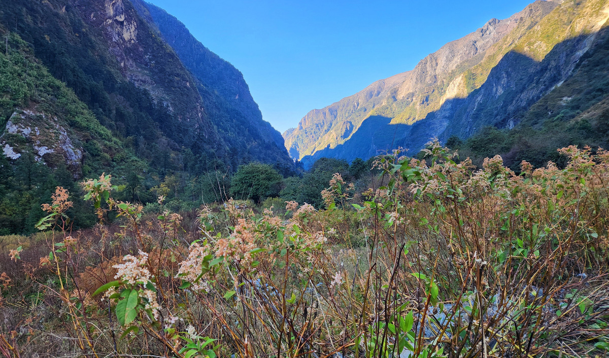 14 день. 04.11.23 — Mangengot (3390) — Chipling (2170). 15 км. 6 часов. Спуск 1200 метров и немного подъёмов.