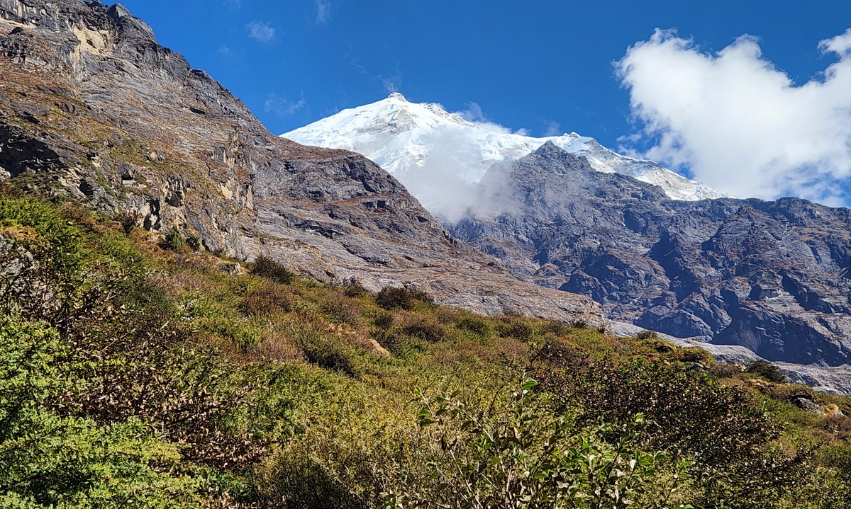 Показалась снежная вершина горы Лангтанг Лирунг (7227 м).