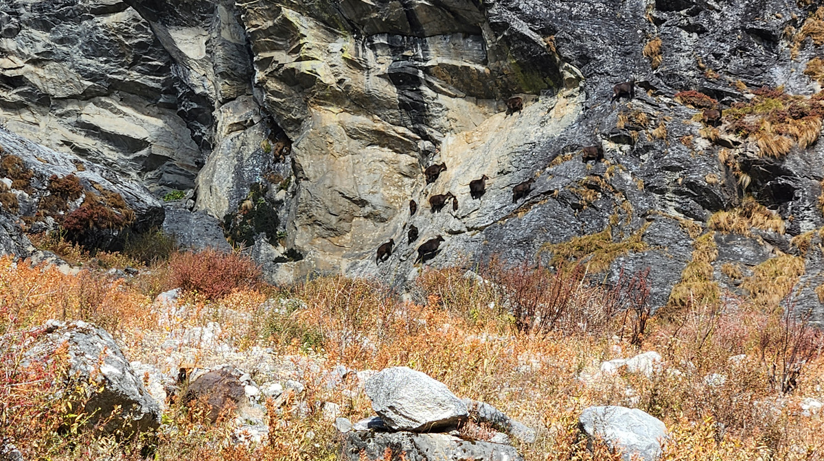 И, кстати, на подходе к водопаду я видела большое стадо горных гималайских козлов. Они, почуяв меня, бросились на утек по крутым скалам.