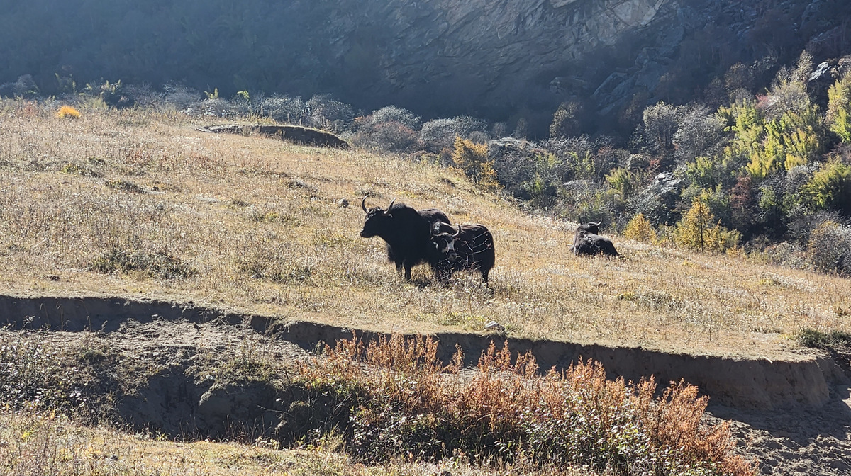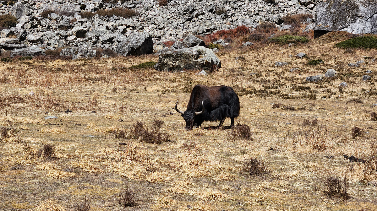 По пути мы видели много яков, они там пасутся. И даже были лошади. И это на высоте 4000 метров.