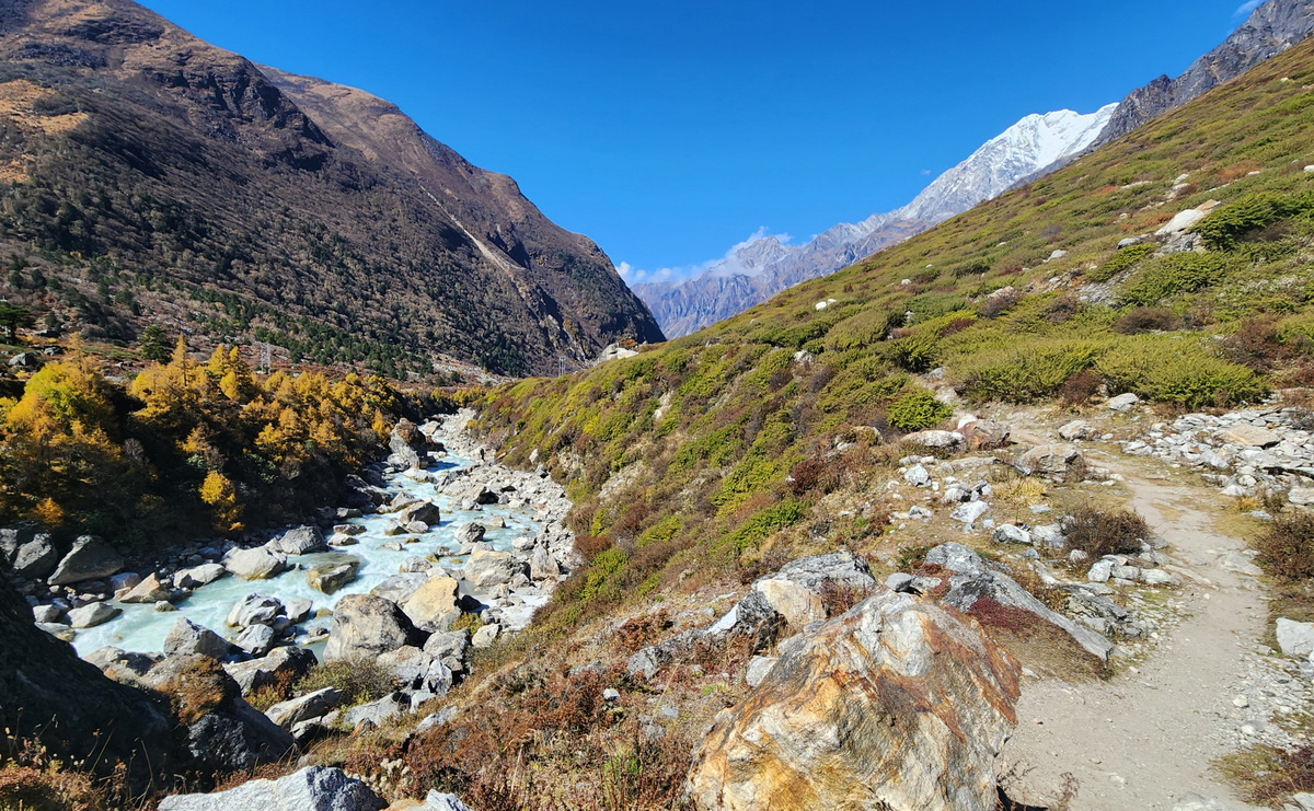 А теперь фантастически красивые пейзажи, ради которых мы и пошли в поход по долине Лангтанг Кхола в сторону Лангшиша Кхарки.
