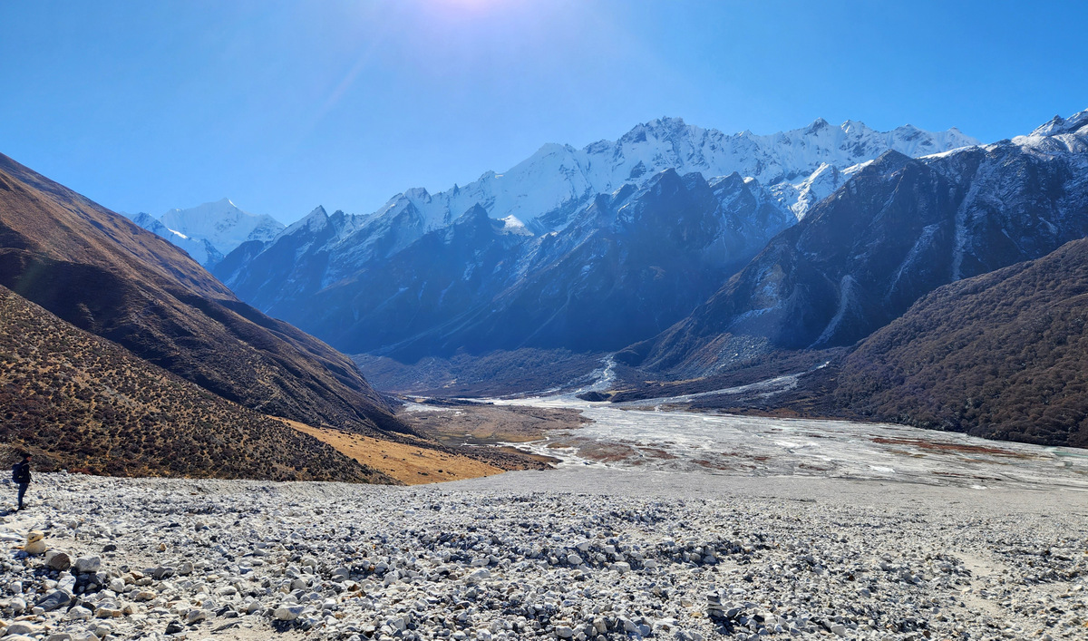 5 день. 26.10.23 — Kyanjin Gompa. Радиальный поход по Langtang Khola valley в сторону Langshisa Kharka. Туда и обратно. На целый день. Примерно 10 км в каждую сторону, набор высоты 180 метров.