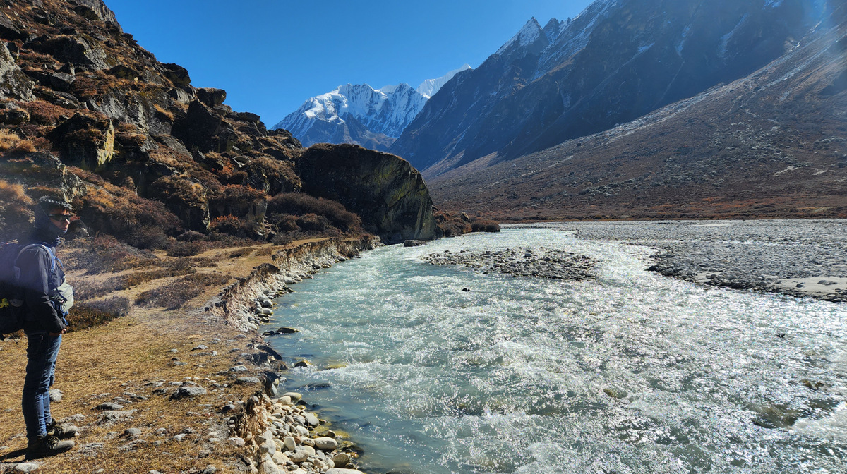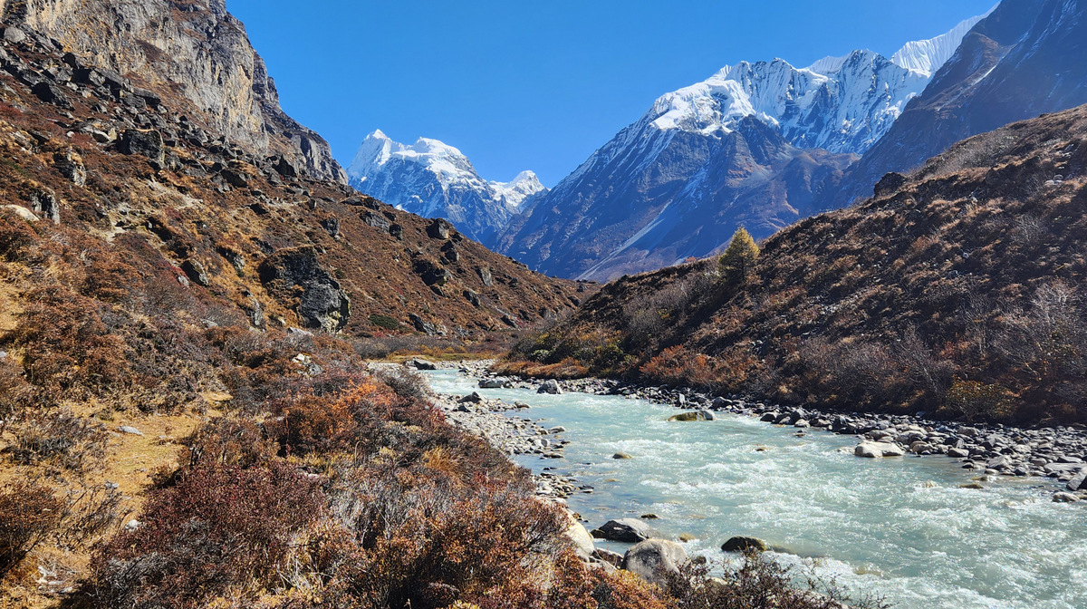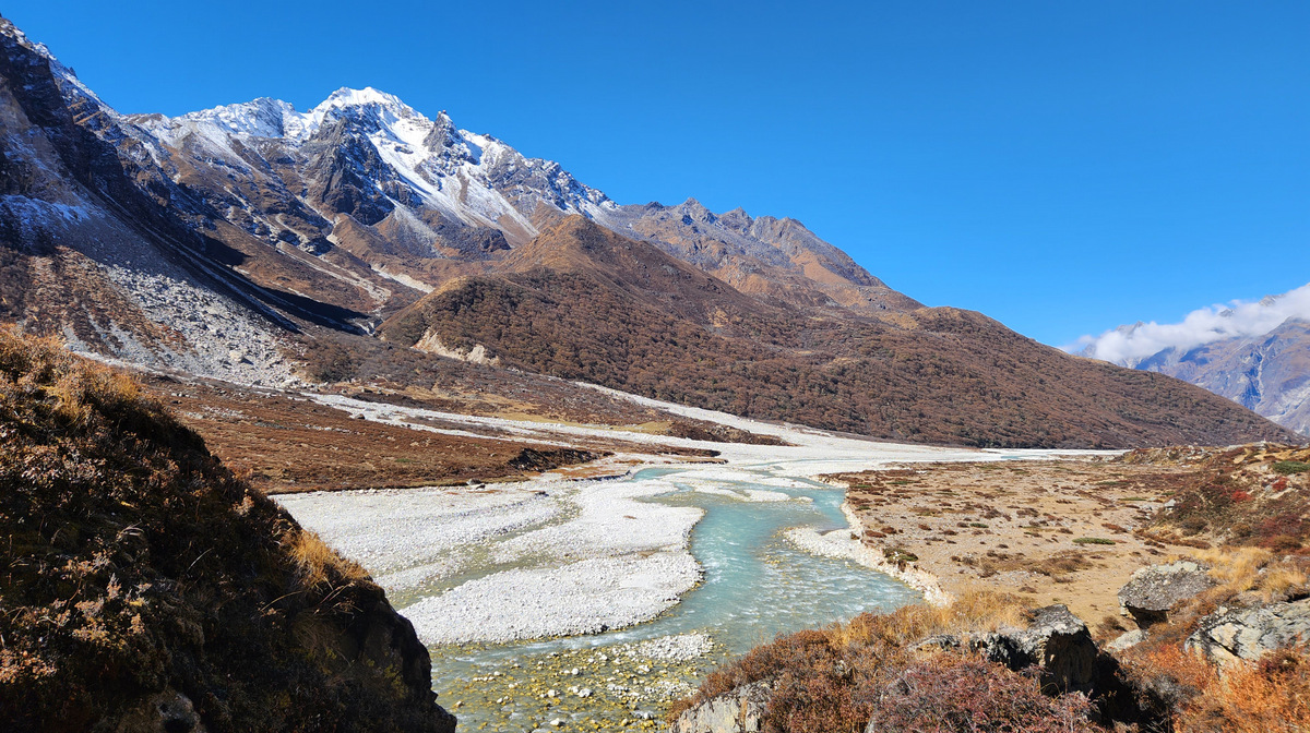 Река Лангтанг Кхола и гора Тсерко Ри.