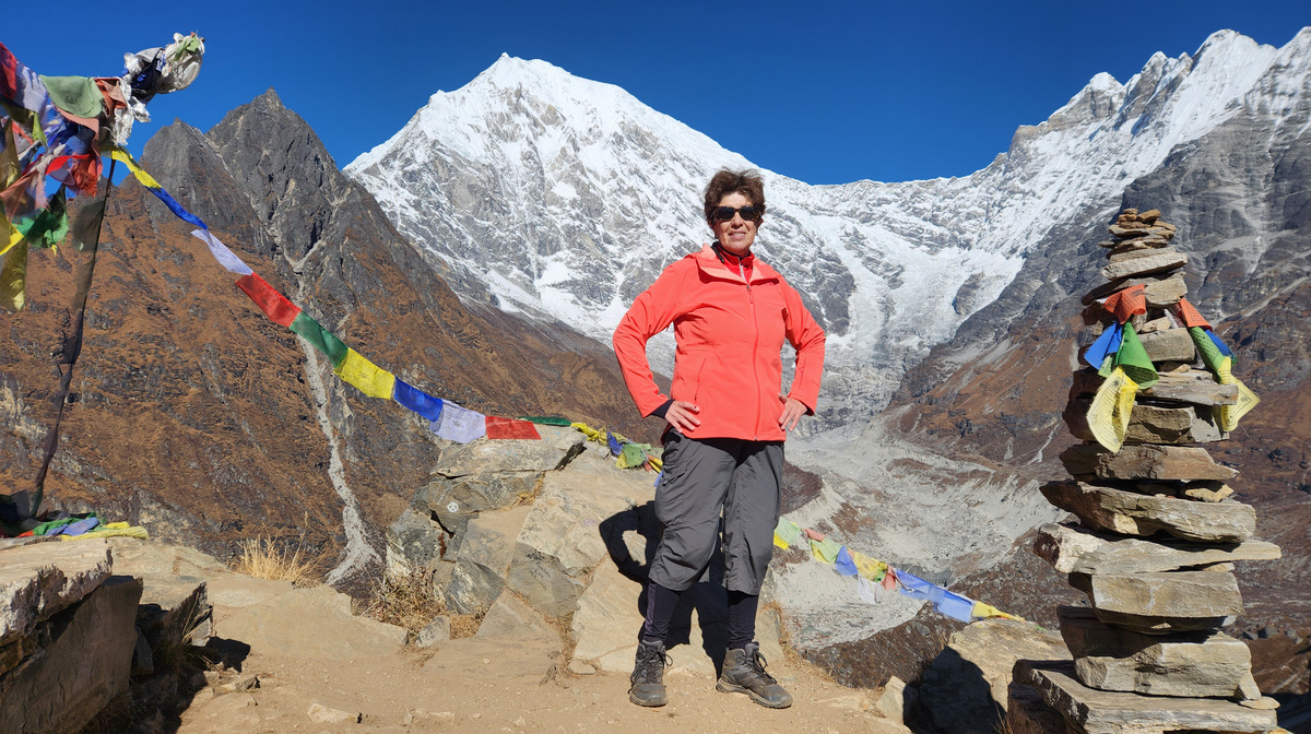 На треке Лангтанг эту гору я уже обсмотрела с разных сторон. Из Кьянжин Гомпа видела её с очень близкого расстояния. А теперь вот посмотрю и отсюда. Вид на гору — эффектный.
