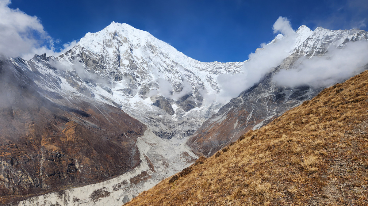Вид на ледник Yubra, конечно же, зачетный. Он довольно близко, километрах в двух от нас. Ледник Лангтанг Лирунг тоже виден, но он гораздо дальше.