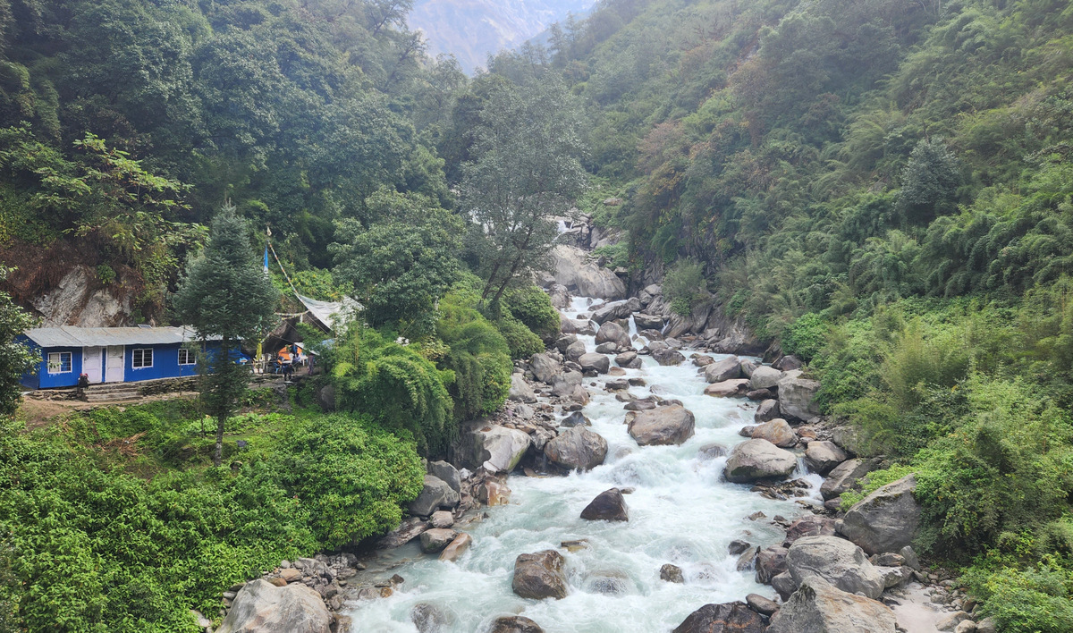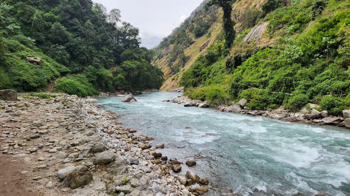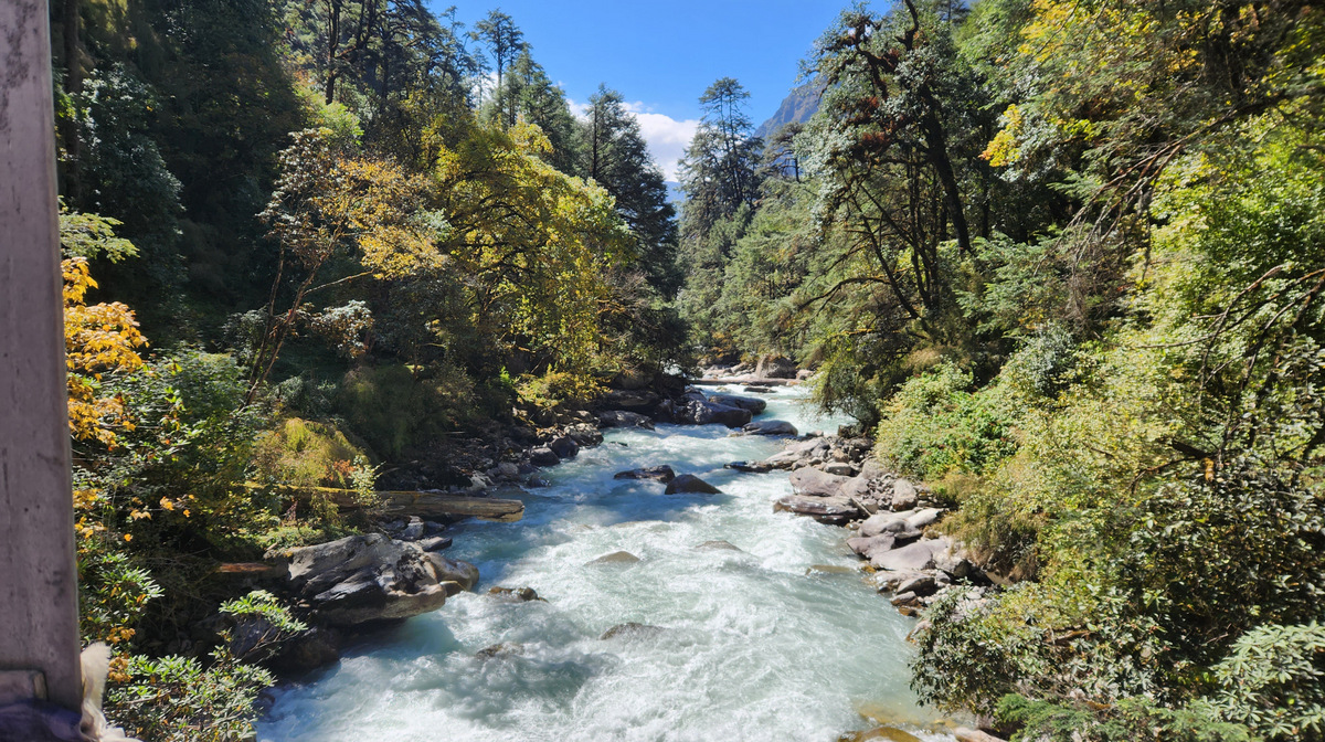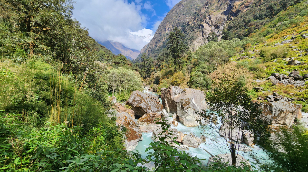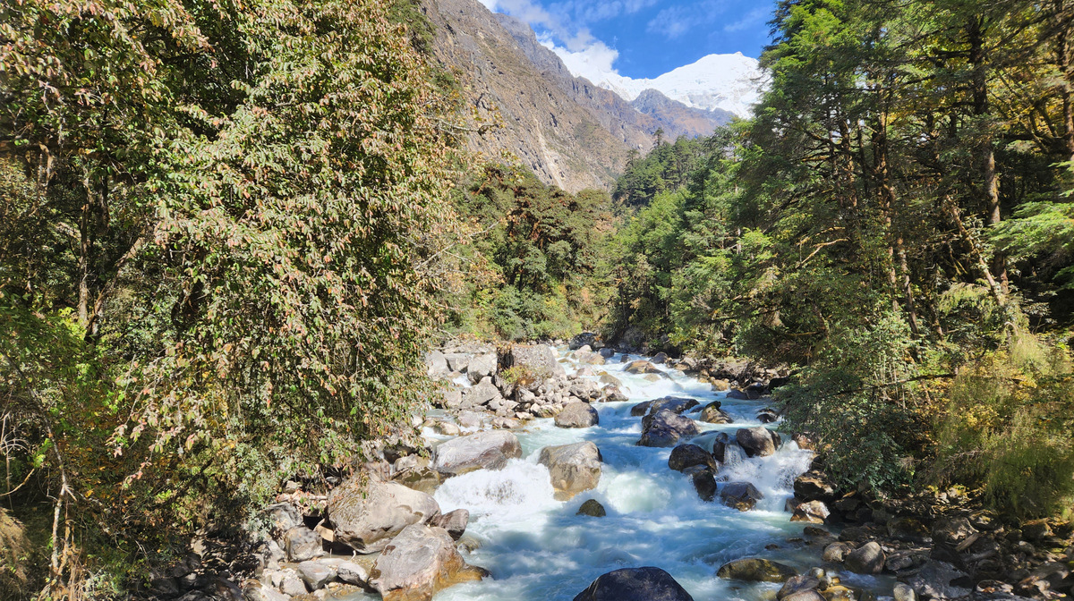 Долина Лангтанг. Взгляд вперёд, вверх по течению реки.