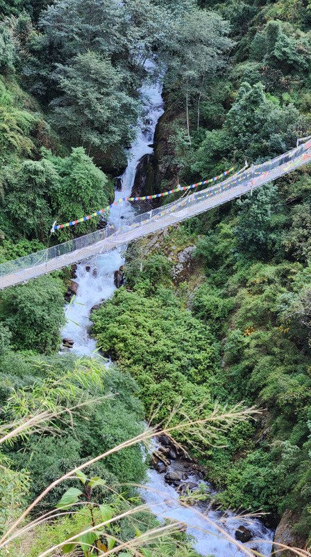 Шли мы и шли, и потихоньку дошли до подвесного мостика. С него открывался отличный вид на ледник Yubra, к которому мы сегодня пойдем, но попозже.