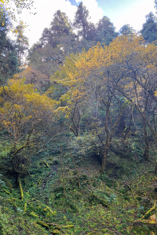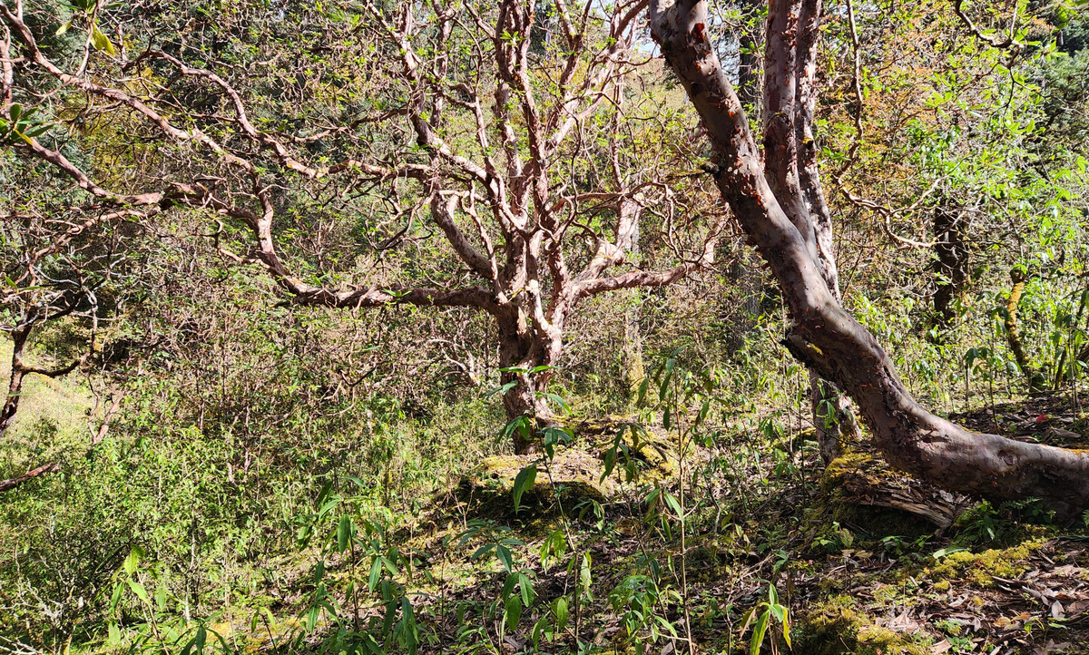По пути нам встретилось много рододендроновых деревьев. Вот бы приехать сюда в апреле во время цветения рододендронов! Надо будет запомнить это место.
