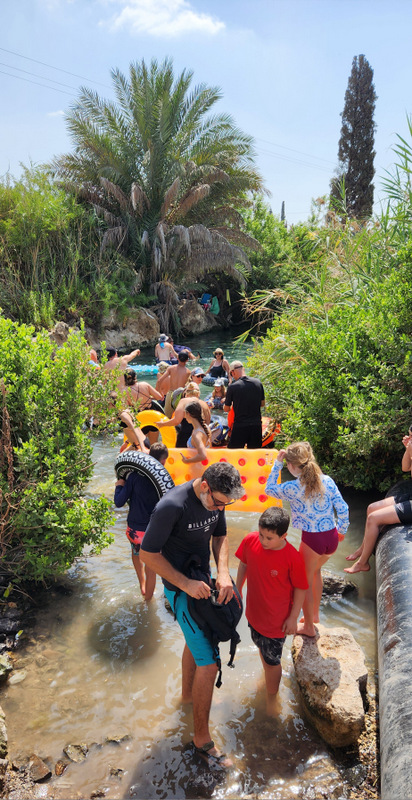 На входе в нахаль, конечно, в этот час уже был аншлаг (пришли мы туда в 10:15). Десятки людей с плавсредствами всевозможных форм, цветов и размеров, и все они заходили в воду. Но буквально через 100 метров стало свободно, видимо далеко не все люди идут маршрут целиком. Конечно, у труб, где можно кататься по воде (своего рода аттракцион)), была небольшая очередишка, но это совсем не страшно. Можно сказать, что нахаль был относительно свободный, и мы прошли его с кайфом. Конечно утром до нашествия туристов вода в нахале скорее всего была прозрачная, а сейчас она была мутноватая.
