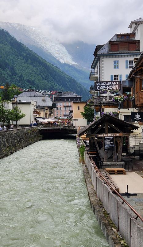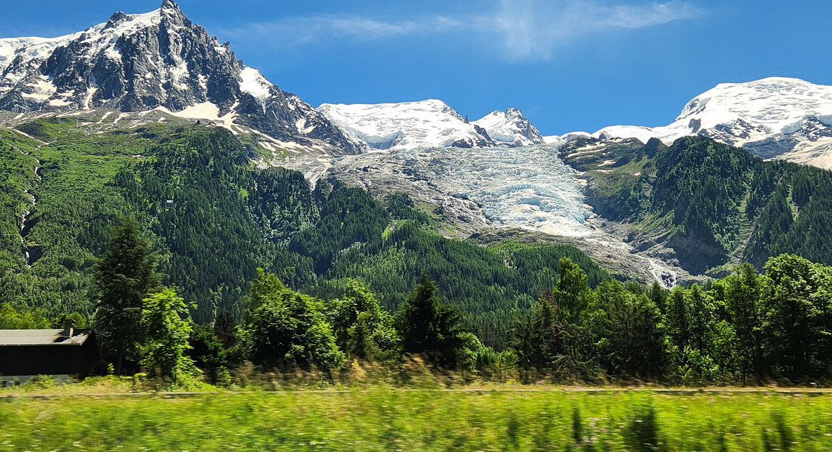 Виды вокруг были просто потрясающие, особенно при подъезде к Шамони. С правой стороны нависал большой ледник. Он был очень близко, и просто меня потряс. Я не ожидала, что прямо в городе можно увидеть настоящий ледник! Впоследствии я узнала, что это ледник Боссон.