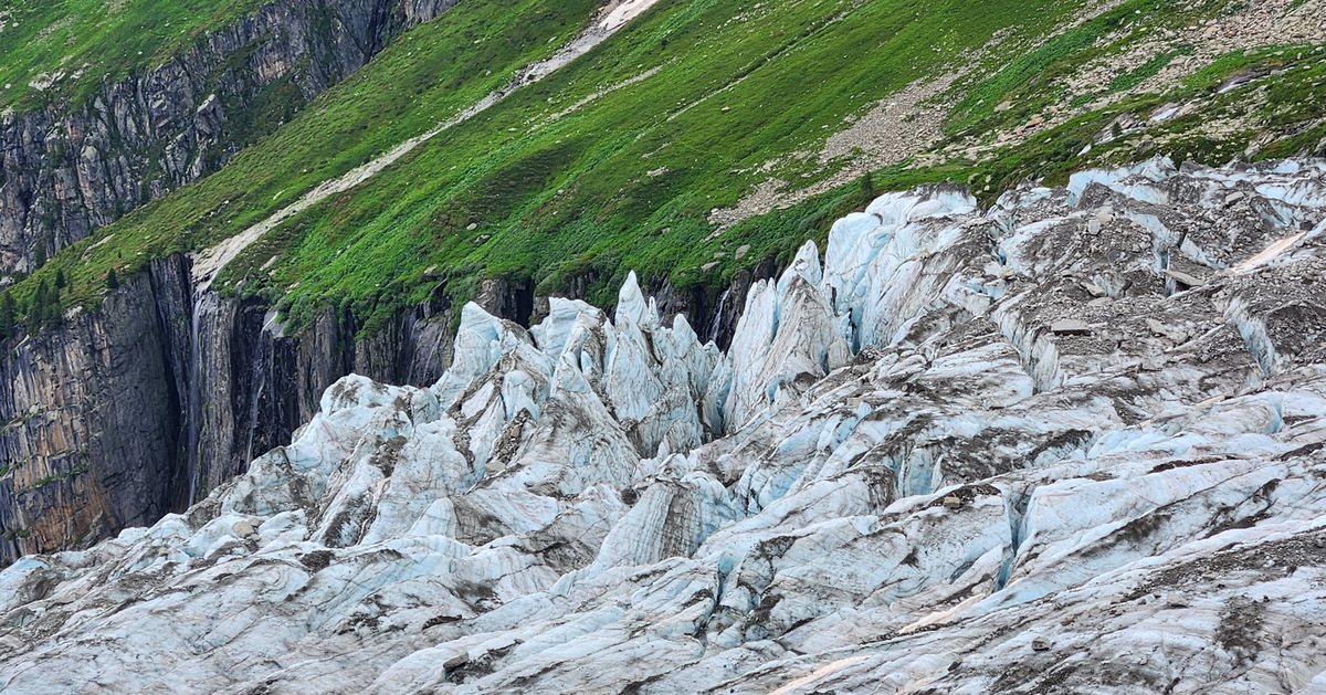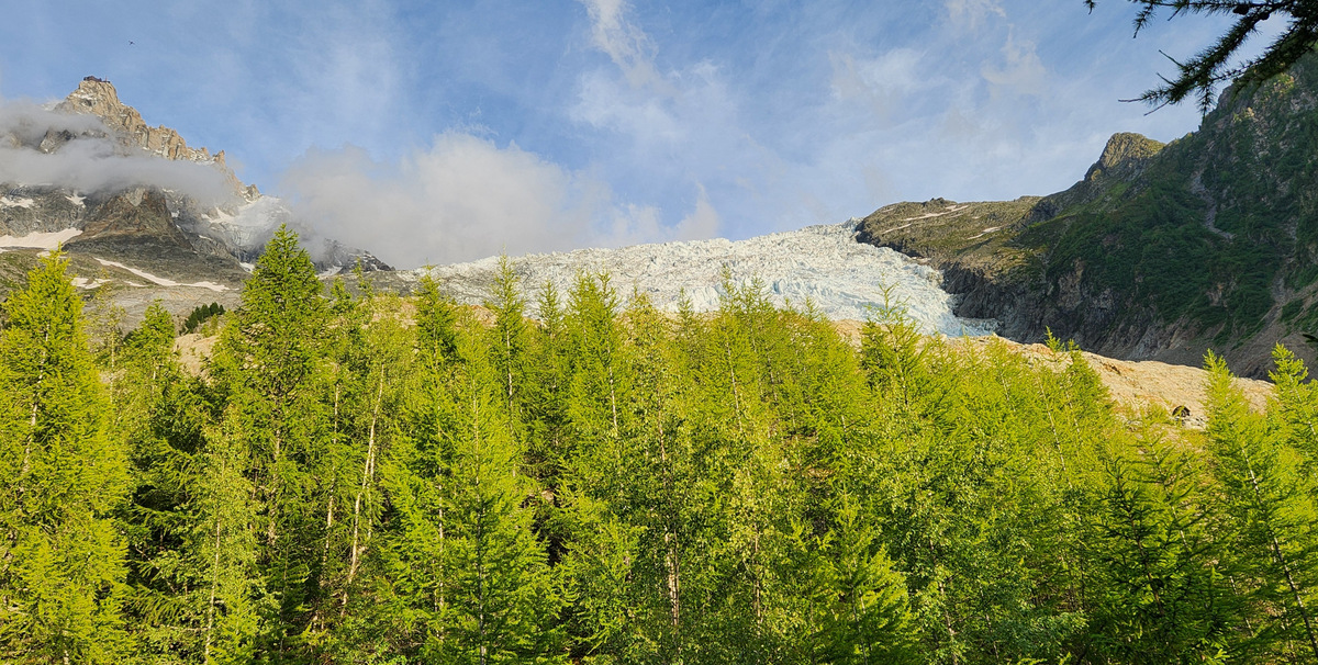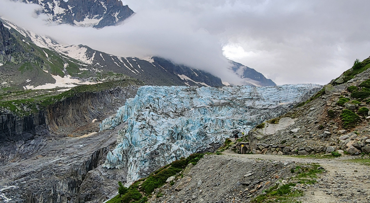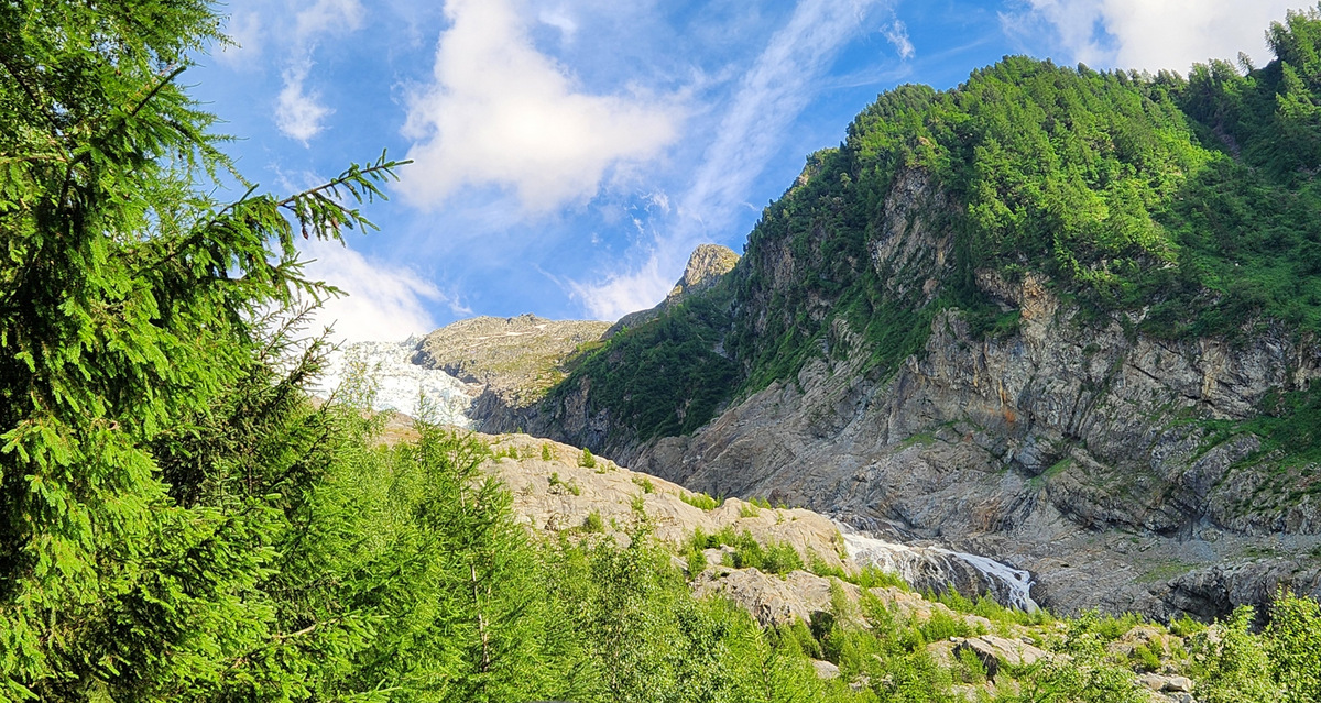 Идём к водопаду ду Дард и не можем оторвать глаз от ледника Боссон.