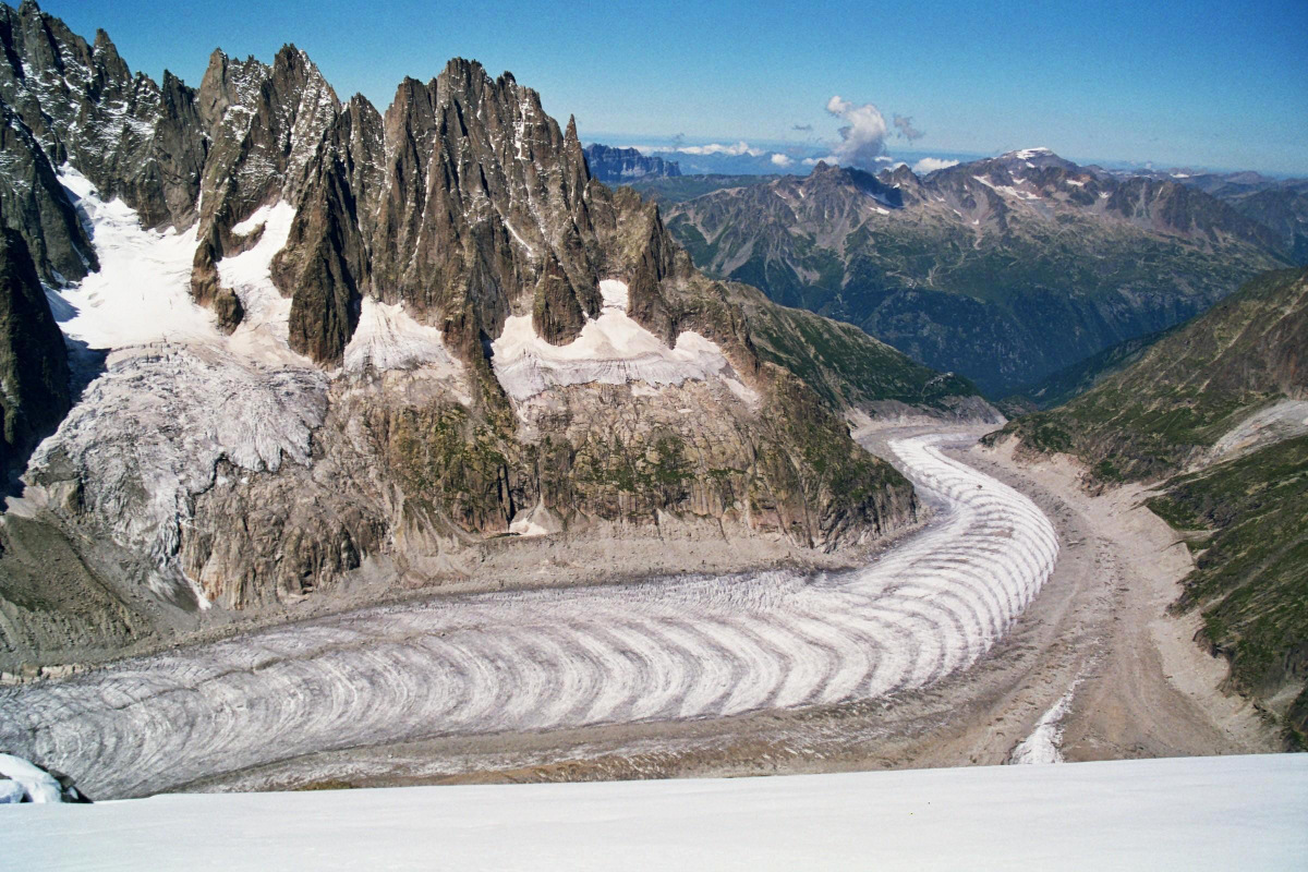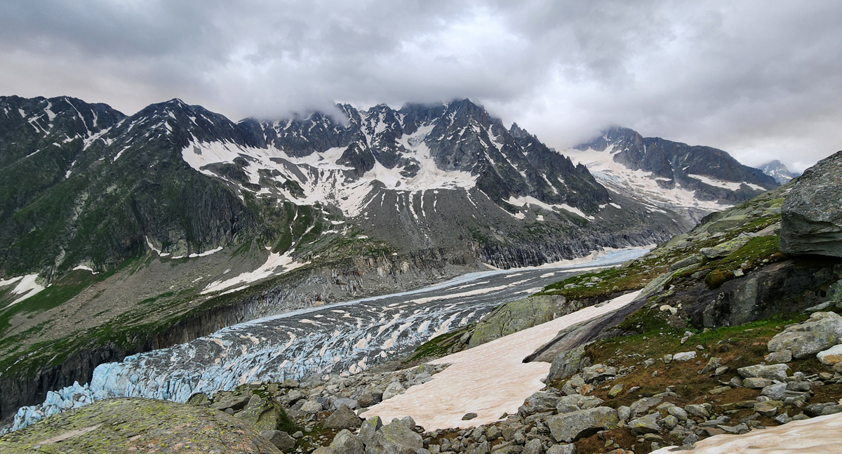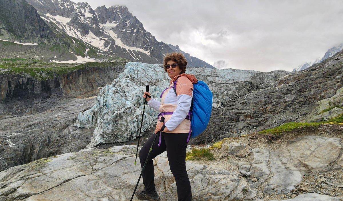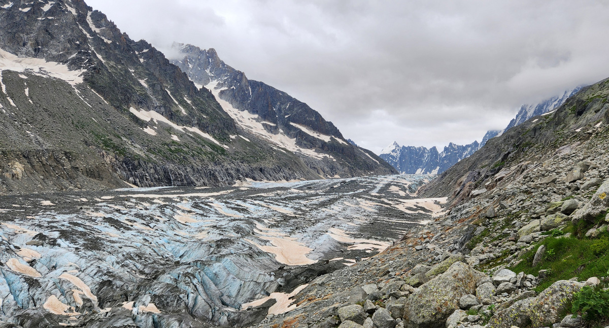 Идём к водопаду ду Дард и не можем оторвать глаз от ледника Боссон.