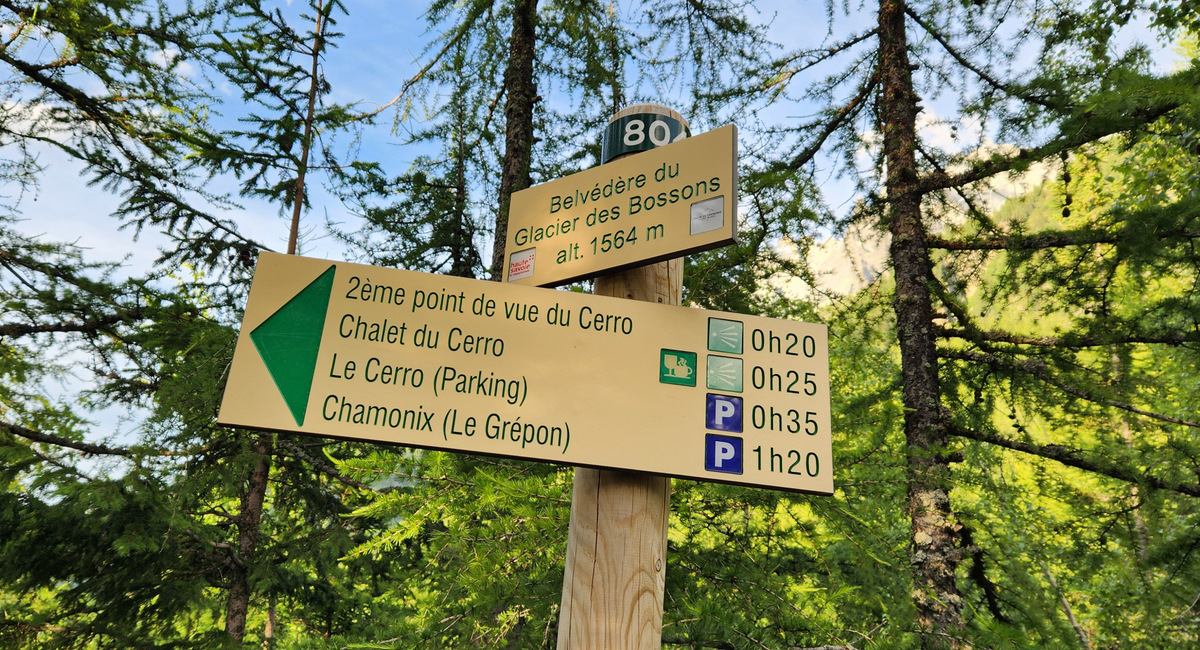 Идея эта пришла мне, когда возле касс подъемника Агюй-Дю-Мюди я увидела указатель на пешеходную тропу.