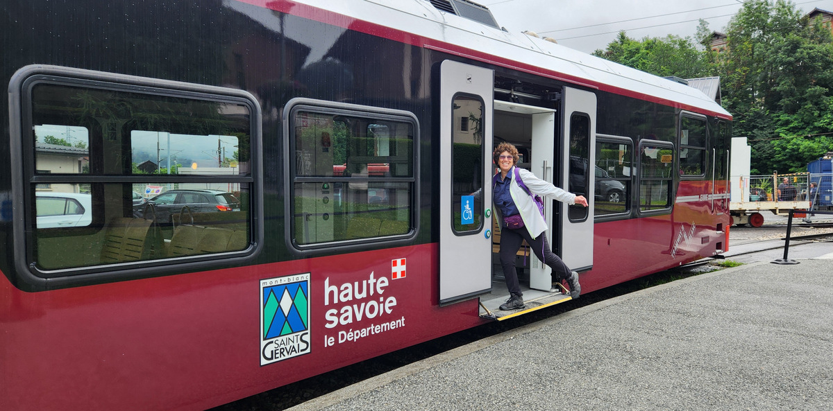 Но тут Лена обнаружила в интернете информацию, что от железнодорожной станции Лез-Уш к парку Мерлет есть бесплатный шаттл. И мы решили воспользоваться этим вариантом. Тем более, что всё равно, тропа из Шамони была закрыта из-за оползня, о чём мы тоже узнали из интернета.