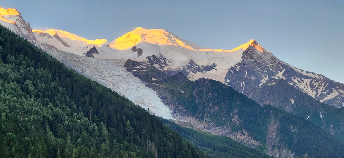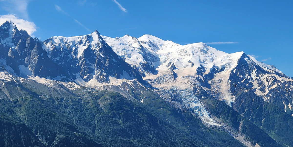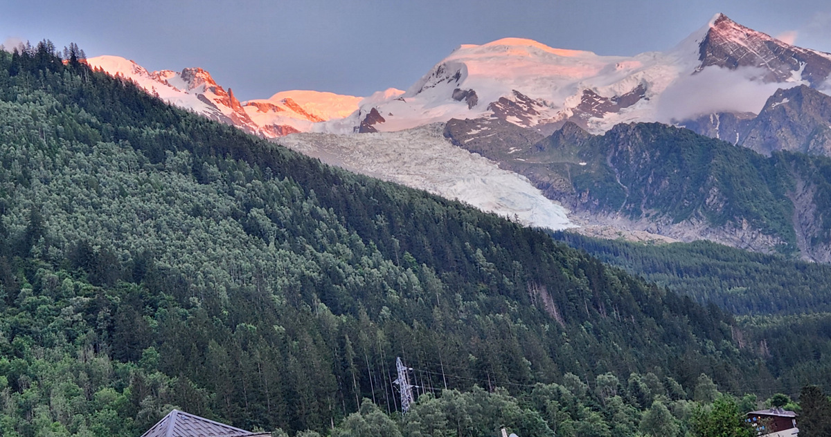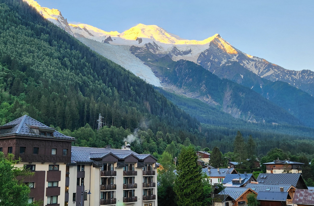 С балкона видны заснеженные горы, почти что Монблан)). Точнее, вершина, которая находится рядом с Монбланом. И ледник Боссон. Просто кайф!